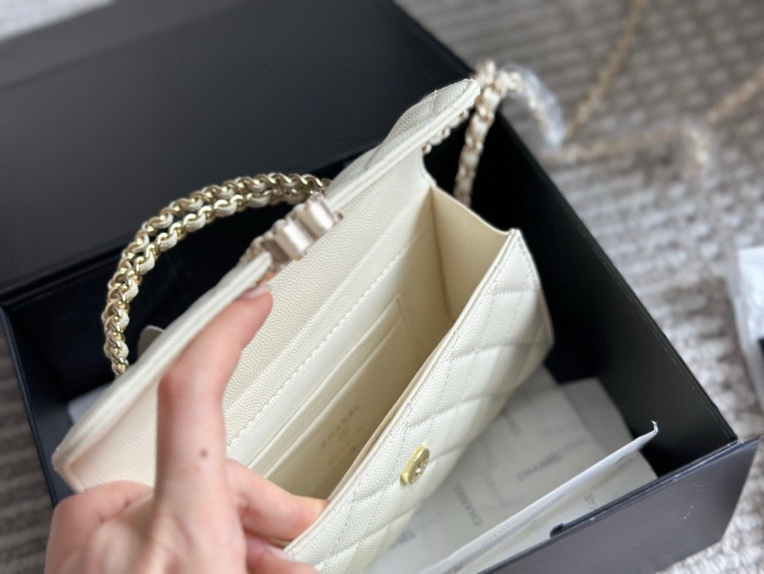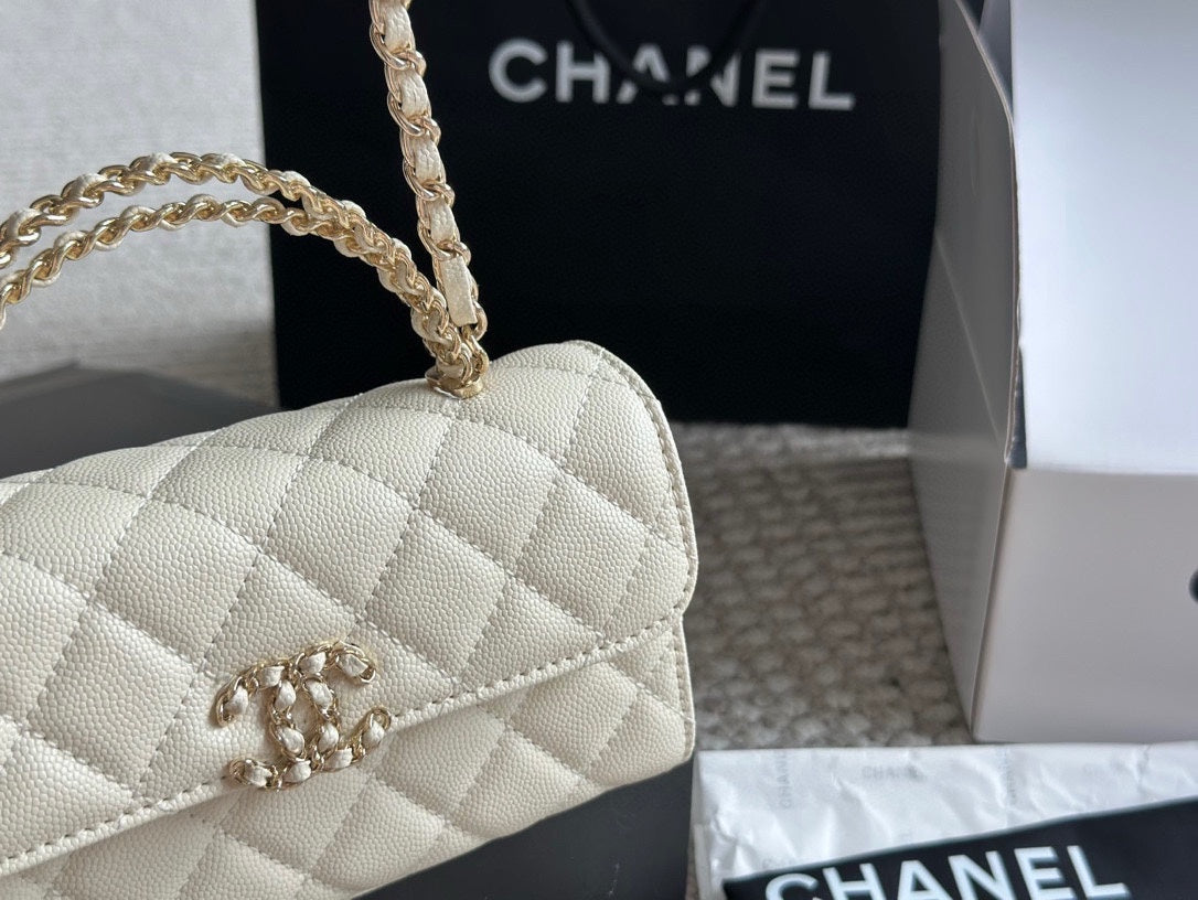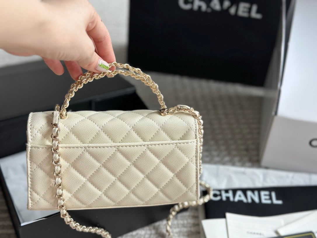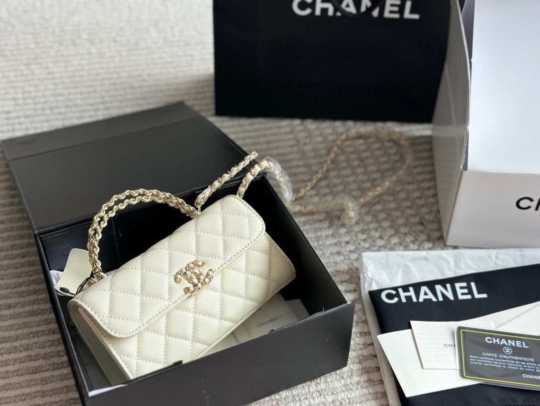 Diese rechteckige CoCh Timeless Mini aus Rindspaltleder in weiß ist das perfekte Finish für einen stilvollen Look. Ihr klassisches, kompaktes Design bietet Platz für Ihre Abend-Essentials – Handy, Kartenetui und Lippenstift. Abgerundet durch helle, goldfarbene Hardware, verkörpert die zierliche Coch-Tasche von 2023 zeitlose Raffinesse und kommt in einem exzellenten, pre-loved Zustand. Tragen Sie sie zu formellen Anlässen elegant am Henkel in der Hand.